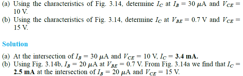 如果我们考虑国会预算办公室为1 μA时,得到的集电极电流为IB.= 0 a将是250(1μA)= 0.25 mA,如图3的特征中的再现。3.14。