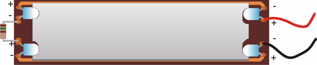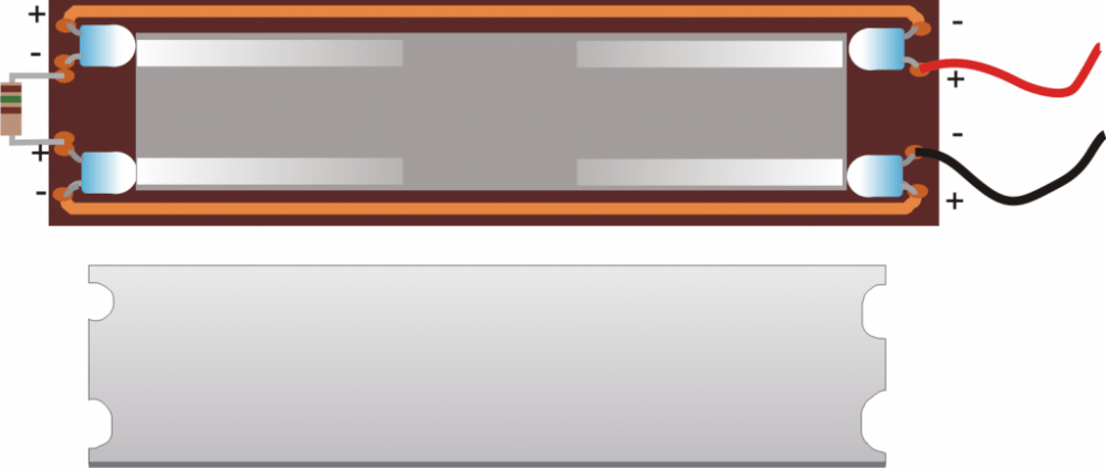 连接led和电阻如下图所示,这样led聚焦光穿过矩形PCB的长度。