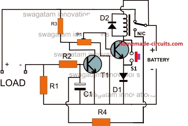 毗瑟奴。通过可调电源将较低的电池切断电压施加到电路上,并调整P1,直到继电器刚好失活,一旦设定完毕,当电池电压达到此值时,电路将自动断开