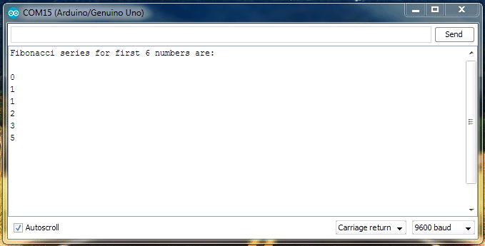 在上面的程序中,我们使用执行十进制函数的“Float”,我们使用“serial .print();”来打印串行监视器中的值,程序的其余部分是不言自明的。你可以用你自己的值来改变程序中的变量a和b。