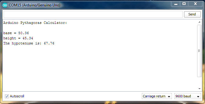 系列。println(“Arduino毕达哥拉斯计算器:”);